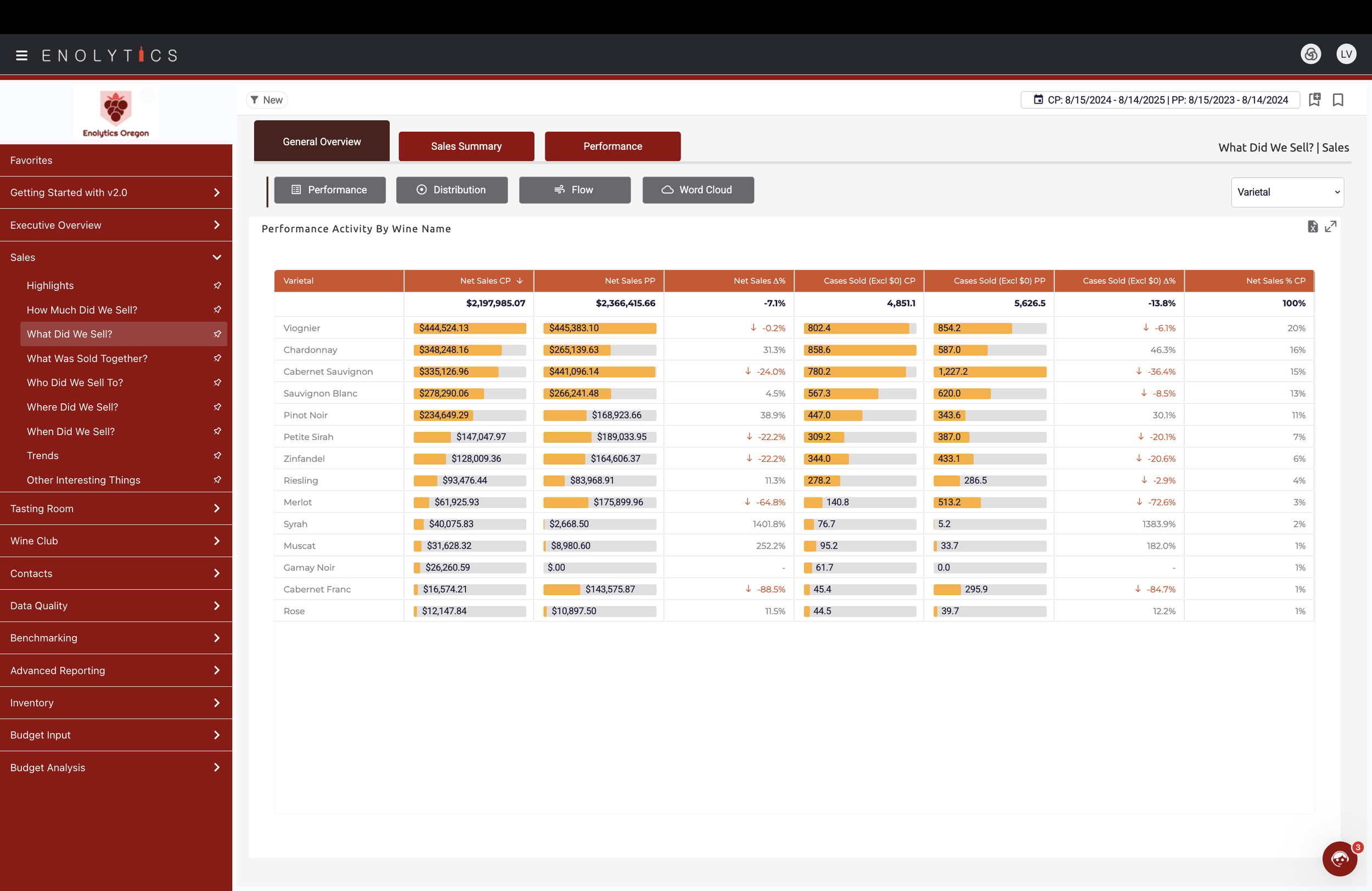 Track performance by Varietal, Wine, Individual SKU, Bundle, and Non-Wine Products