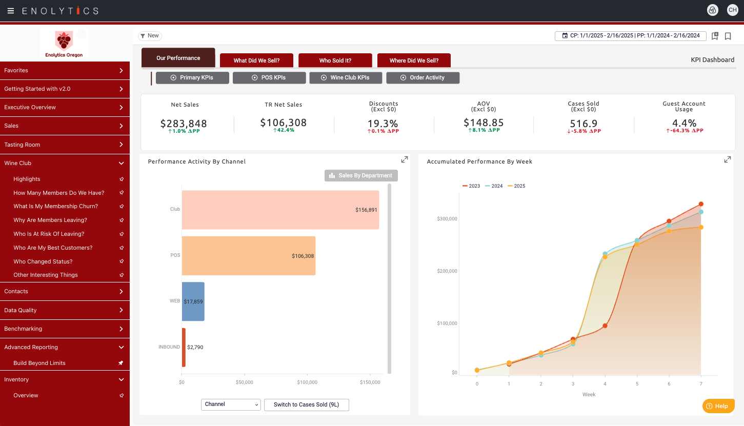 Enolytics DTC wine data tools deliver advanced reporting, proprietary algorithms, and integrated forecasting tools that competitors simply don’t have—all proven to drive revenue and outperform industry benchmarks.