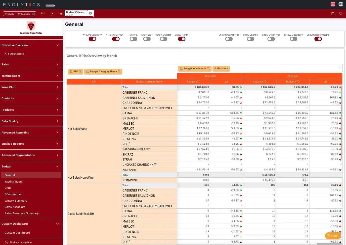 Budget is the one module that is populated separately from the winery's DTC provider. Enolytics provides the template for the winery to complete.